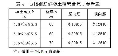 平原區(qū)填土高度h≤6.5 m的小橋,可采用薄壁臺(tái),軟基段宜控制在6.0 m以下。現(xiàn)運(yùn)營(yíng)的高速路中有些薄壁臺(tái)出現(xiàn)開裂現(xiàn)象,設(shè)計(jì)時(shí)應(yīng)特別引起注意。