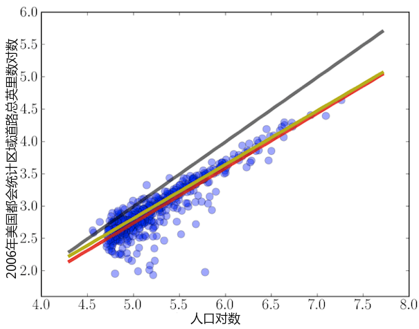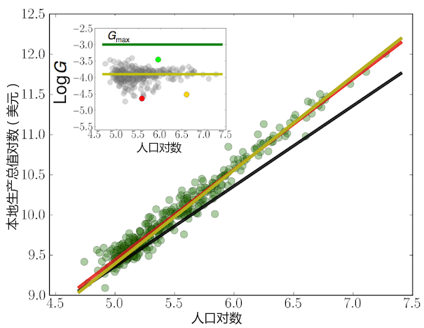 他們使用大量數據,與同僚系統構建起一個城市可量化特征的體系:道路網絡的長度、居民的平均收入、人均專利數量。正如埃米莉•巴杰(Emily Badger)去年所說,貝騰科特與韋斯特比較了城市人口增長與這些特征之間的聯系,考察基礎設施如何增長、社會經濟產出與社會互動如何相關、人口密度發展如何減少社會互動的能源消耗。