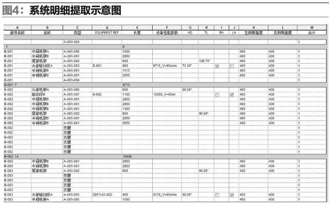 而在BIM技術軟件的應用中,僅通過其中的一款Revit軟件便能減輕設計人員的工作量,且能快速提取設計所傳遞的相關信息,即在平面布局完成的同時便可提取相關零部件的參數及數量信息(如圖4),便于快速生產的組織;同時,提高了各工程材料預算的準確性,減少冗余采購量,節省資金。