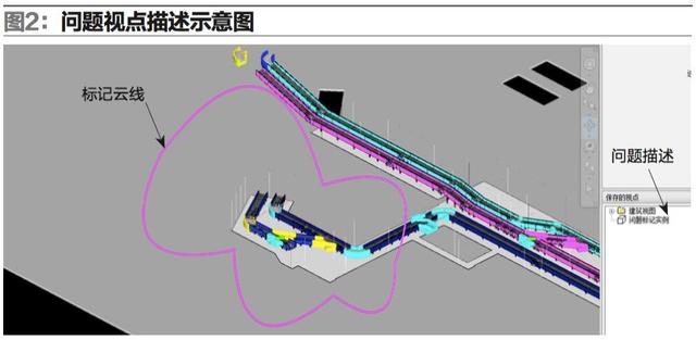 4.參照后的項目文件中具有尺寸量取、問題視點標記等功能,方便問題內容的傳遞,且在復雜系統中能快速切換到標心的視圖中(如圖2)。