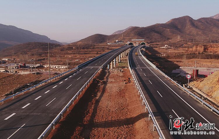 12月23日拍攝的太行山高速平贊段蒼巖山互通路段。當日,長59.8公里的平贊(平山-贊皇)高速石太互通至邢臺界段通過交工驗收。