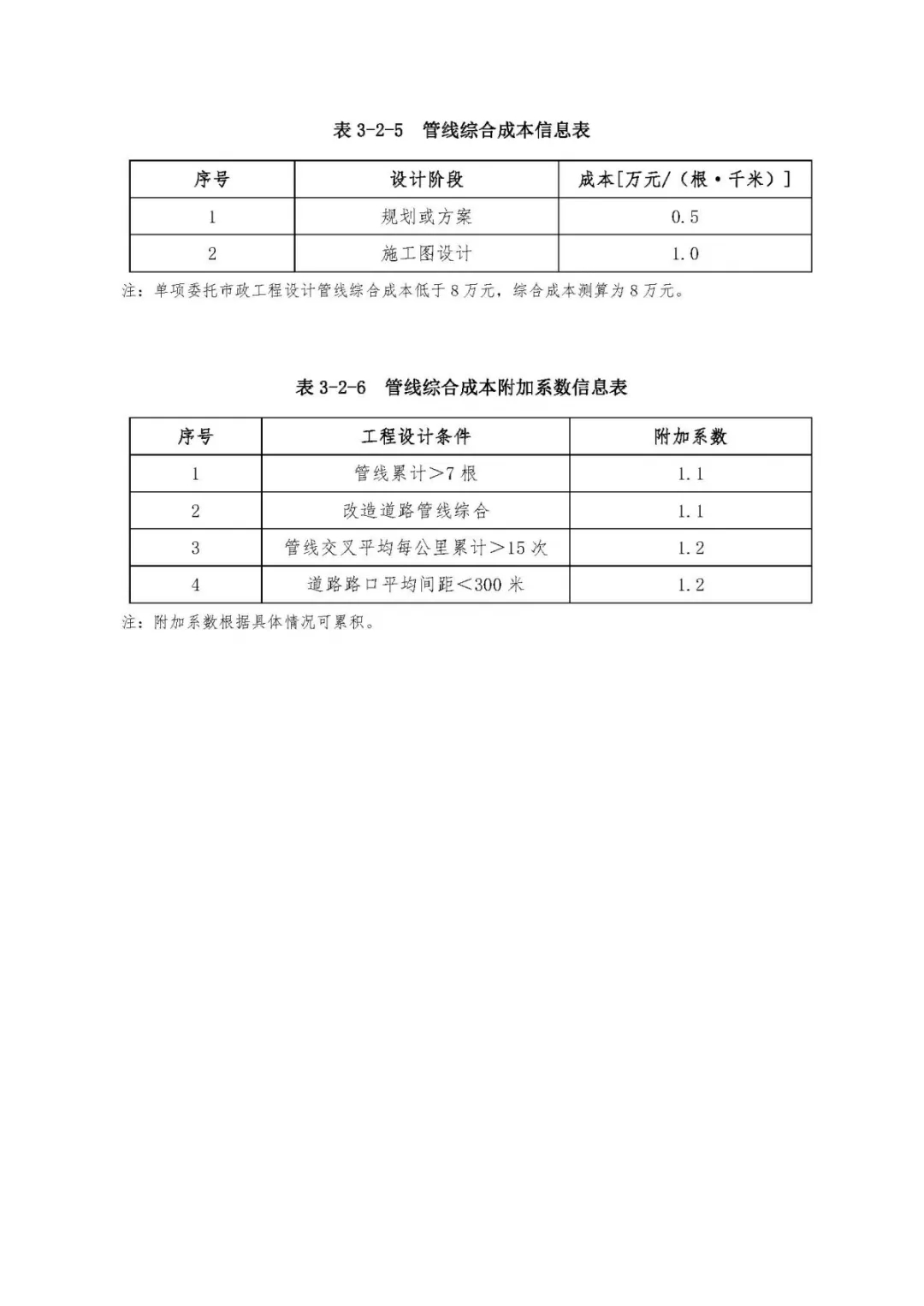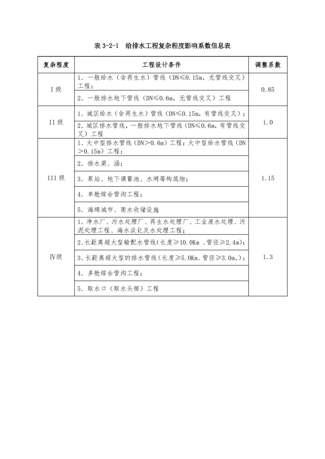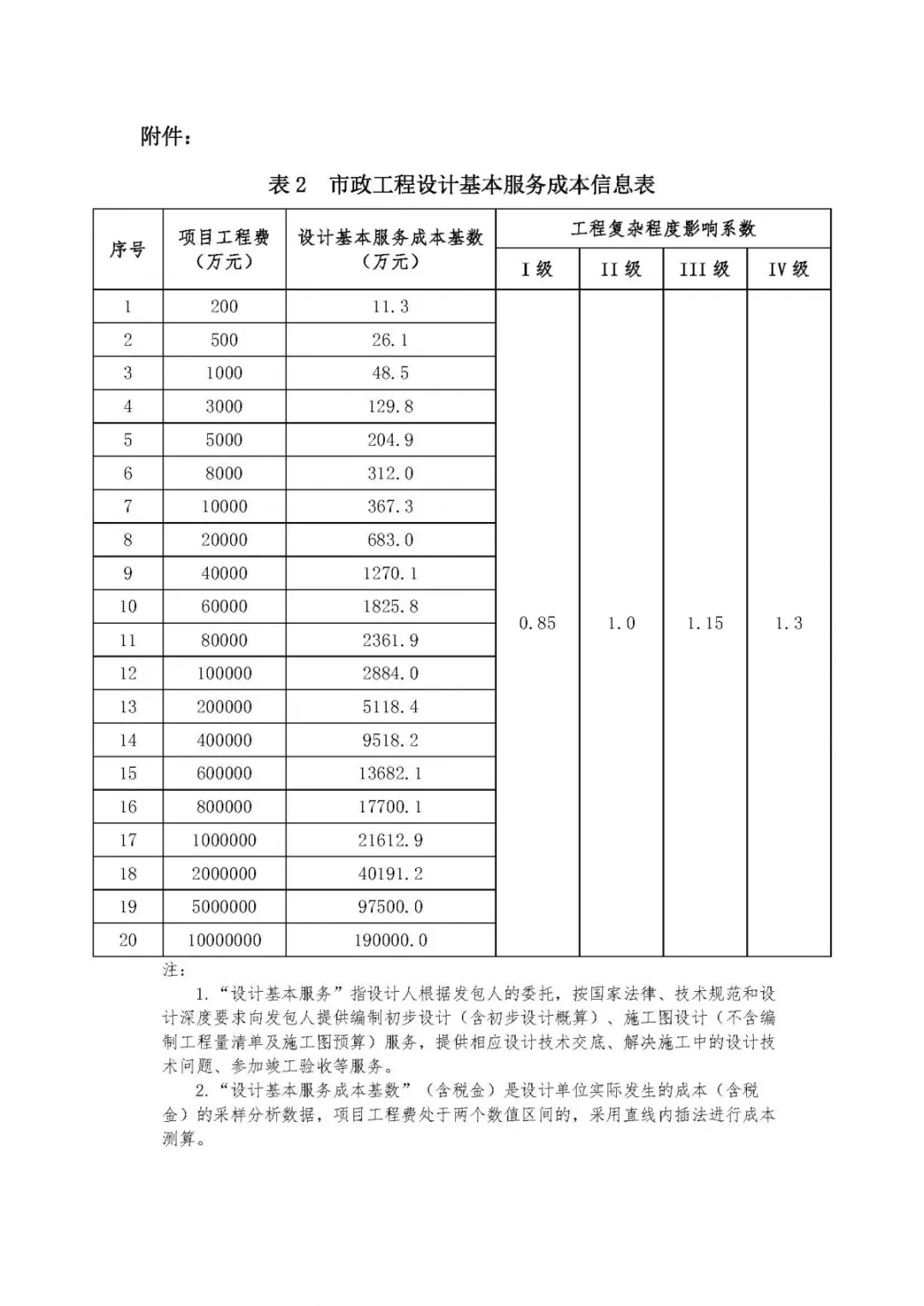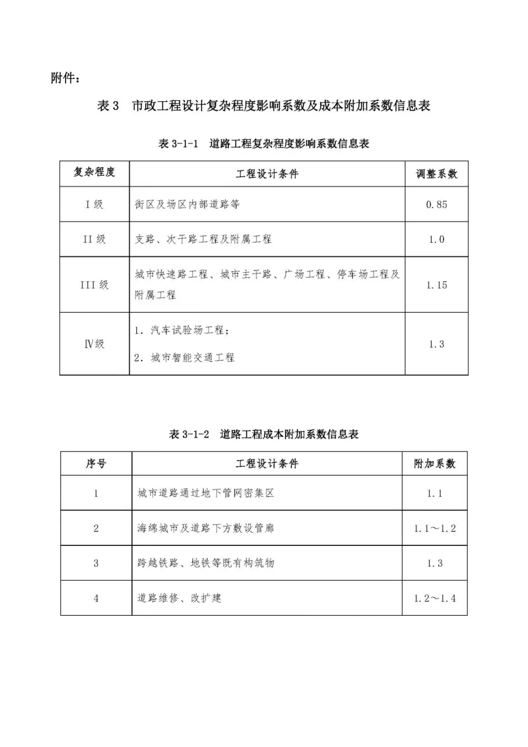 表3、市政工程設(shè)計(jì)復(fù)雜程度影響系數(shù)及成本附加系數(shù)信息表