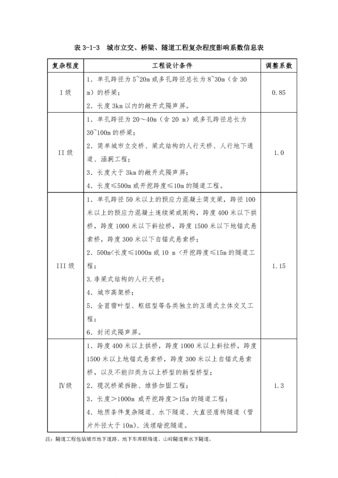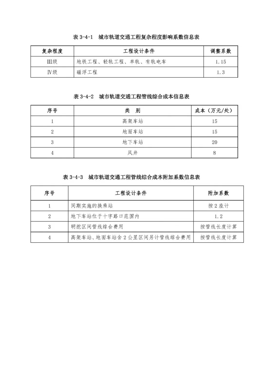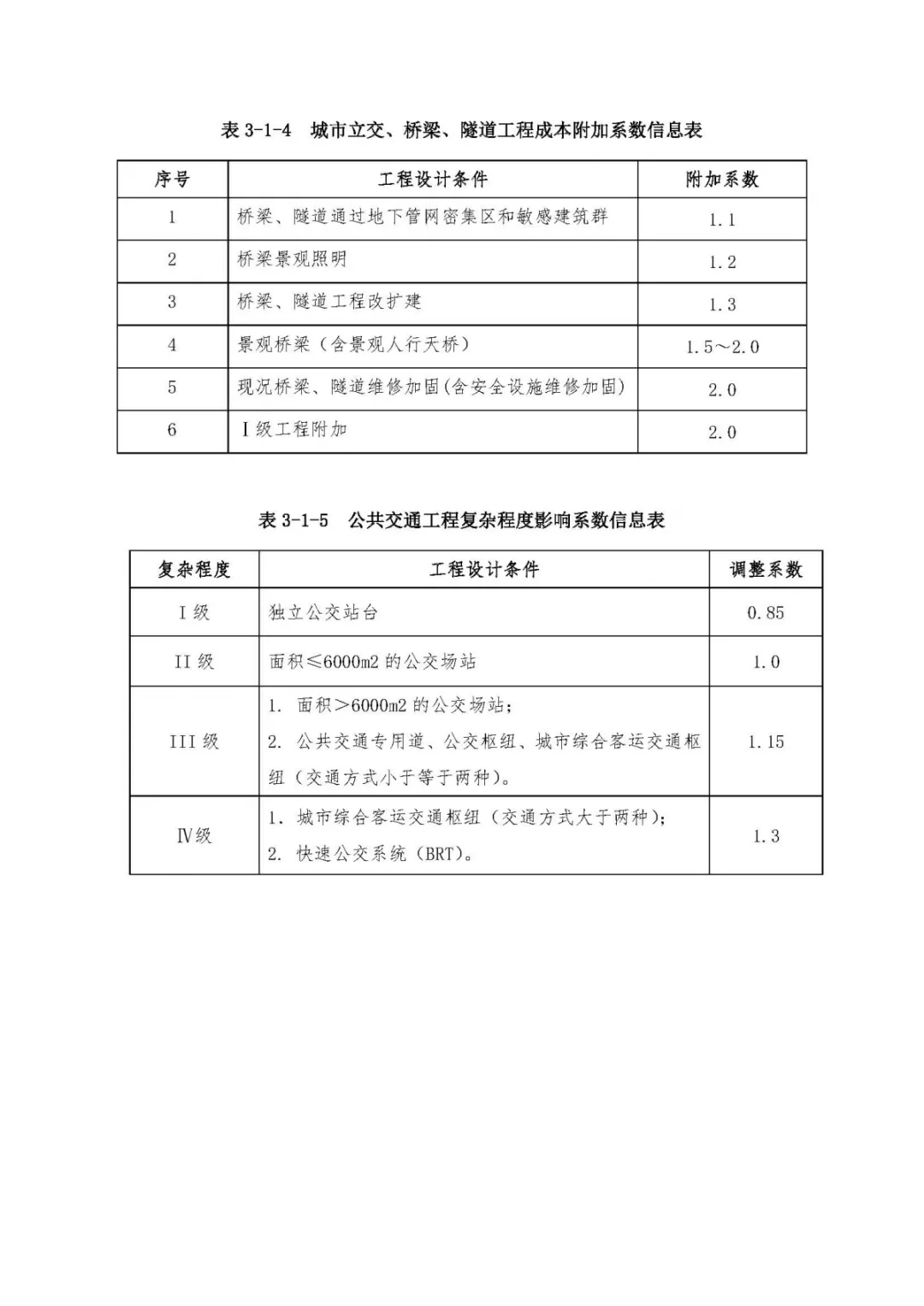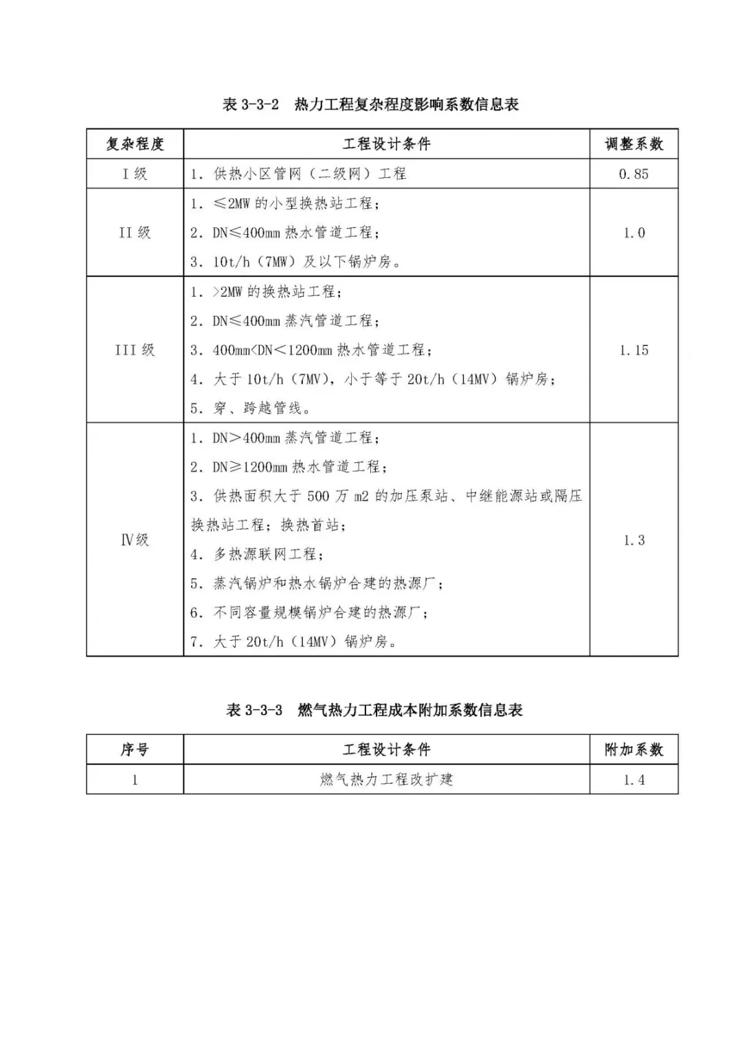 表3、市政工程設(shè)計(jì)復(fù)雜程度影響系數(shù)及成本附加系數(shù)信息表