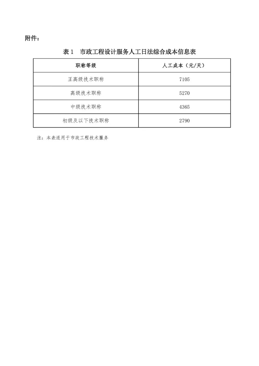 表1、市政工程設(shè)計(jì)服務(wù)人工日法綜合成本信息表