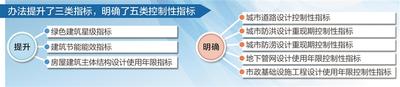 管理辦法提升了房屋建筑和市政基礎(chǔ)設(shè)施工程的三類(lèi)指標(biāo),明確了五類(lèi)控制性指標(biāo)。