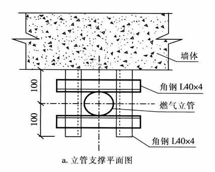 隨著建筑物層數(shù)的增加,燃?xì)饬⒐艿拈L(zhǎng)度也變長(zhǎng),管道的自重變大,所以應(yīng)設(shè)置管道的固定支架,使固定支架與建筑物成為一體,防止因管道下沉而引起引入管受力折斷或變形引起倒坡。一般固定管道的做法有: