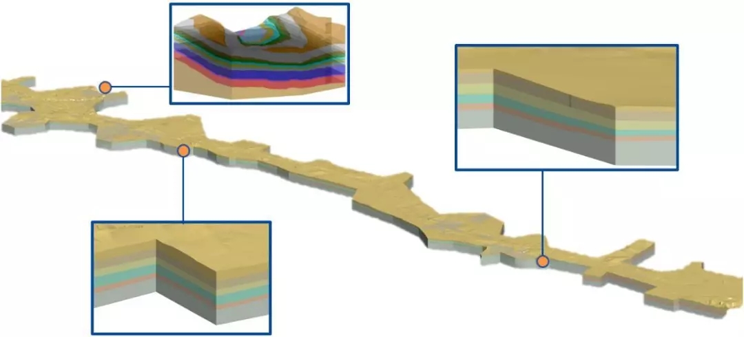 構建三維地質模型。地質條件關乎設計質量,項目組研發(fā)了地質建模軟件,根據(jù)項目勘探的原始鉆孔、地質剖面圖等數(shù)據(jù),建立了項目區(qū)域三維地質模型,直觀反映地質狀況。