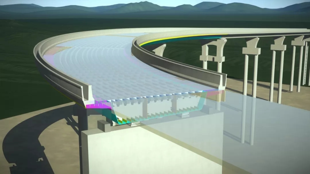 道路BIM正向設計。項目互通立交密集,設計難度大。項目組創(chuàng)新性地研發(fā)了道路工程BIM正向設計軟件CNCCBIM OpenRoads。該軟件基于精準的三維基礎環(huán)境,結合項目實際,定制了符合我國規(guī)范要求的參數(shù)化橫斷面模板,通過參數(shù)化技術快速完成道路BIM設計,創(chuàng)建精準的道路BIM信息模型,并基于BIM模型剖切實現(xiàn)了道路工程二維圖紙和報表的自動生成,模型與圖紙實時關聯(lián),確保了圖紙與模型的一致和準確性,滿足了行業(yè)交付要求。