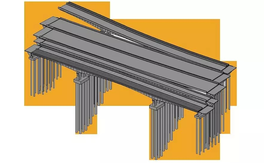 上部結構、下部結構和三維設計基礎模型協(xié)同關聯(lián),實現(xiàn)了自動調整墩高、樁長,且設計方案參數(shù)更改,模型聯(lián)動更新。