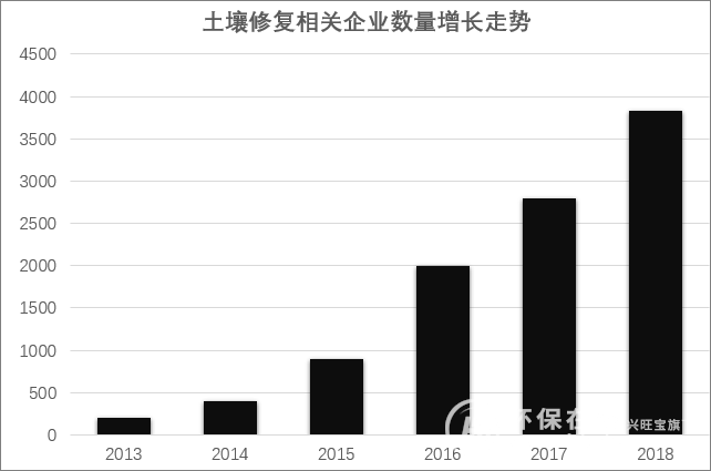 土壤修復(fù)相關(guān)企業(yè)數(shù)量增長走勢圖。資料來源:公開數(shù)據(jù)整理