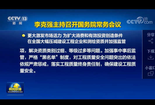 在全國大幅壓減建設工程企業和測繪資質并加強監管,更大激發市場活力,為擴大消費和有效投資創造條件。