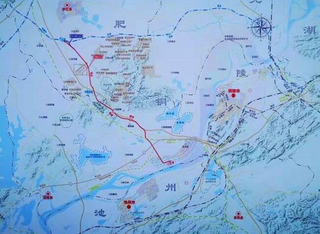 銅陵江北港鐵路專用線工程位于安徽省合肥市和銅陵市境內,該項目線路北起合肥市廬江縣廬銅鐵路廬江南站,南至銅陵市樅陽縣江北港區,途經合肥市廬江縣泥河鎮、礬山鎮、羅河鎮,銅陵市樅陽縣白梅鄉、錢鋪鄉、周潭鎮、陳瑤湖鎮和老洲鎮,正線全長52.113km,項目總投資約34.6億元。
