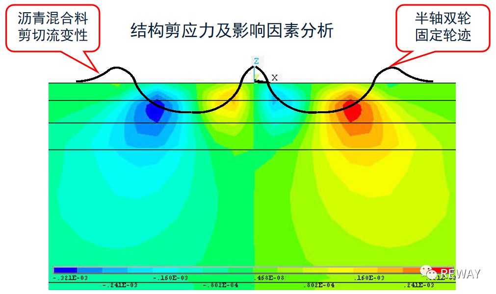 (4)加鋪瀝青面層應(yīng)進行剪切應(yīng)力驗算,以避免面層出現(xiàn)車轍、波浪、推擠、滑移和剪裂等破壞。