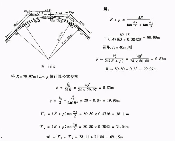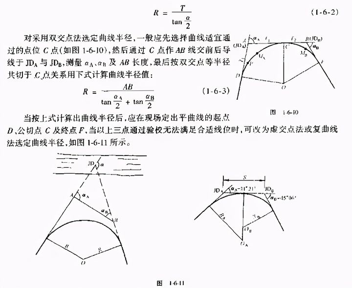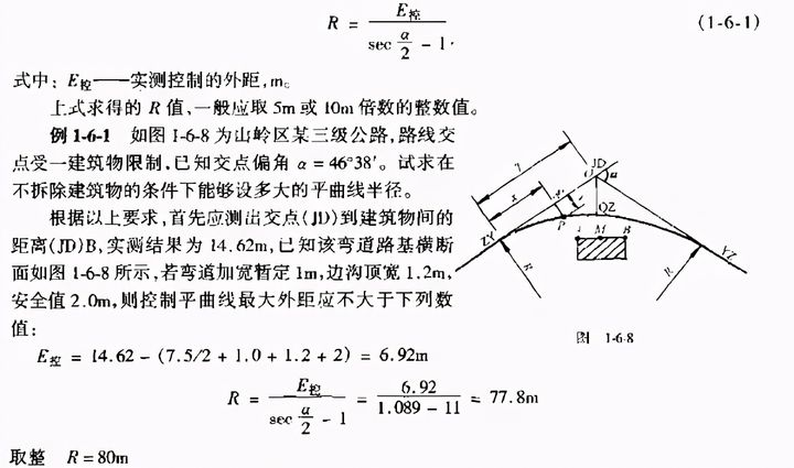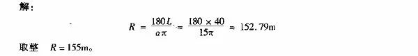 當(dāng)已知交點(diǎn)偏角.其他條件不受限制時(shí),如果平曲線半徑選得過小,則曲線長度太短顯然對(duì)行車不利。此時(shí)應(yīng)用平曲線的最短允許長度來控制半徑,其計(jì)算公式為