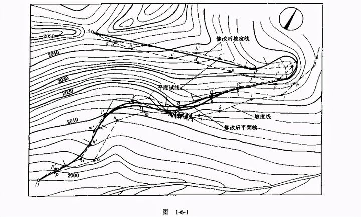 紙上定線是一個(gè)反復(fù)試定線路的過程,平面試線的修改次數(shù)越多,最后所定路線的設(shè)計(jì)質(zhì)量越高,直到認(rèn)為再修改己得不到顯著效果時(shí),紙上定線工作才算完成。