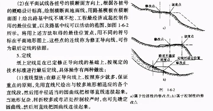 這是在逐段安排的小控制點(diǎn)之間,根據(jù)技術(shù)標(biāo)準(zhǔn),結(jié)合自然條件,綜合考慮平縱橫三個(gè)方面因素,適當(dāng)移動(dòng)交點(diǎn),進(jìn)行穿線,具體定出路線中線位置的工作。具體定線在詳測(cè)時(shí)進(jìn)行。