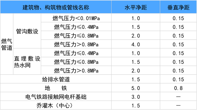 燃氣管不得進入熱網管溝。熱網管溝與燃氣管道交叉垂直凈距小于300mm時,燃氣管必須加套管,套管兩端超出管溝1m以上。