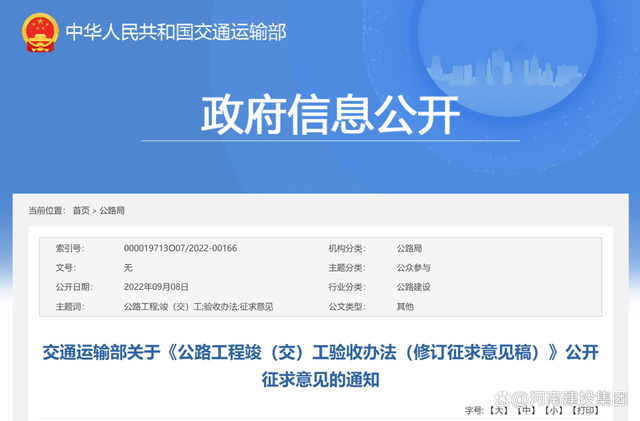 為促進公路基礎設施高質量發展,進一步規范公路工程竣(交)工驗收工作,我部對《公路工程竣(交)工驗收辦法》進行了修訂,現向社會公開征求意見。公眾可通過以下途徑和方式提出反饋意見: