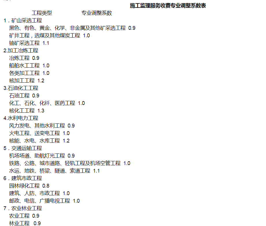 (2)施工監理服務收費基準價=施工監理服務基價×專業調整系數×工程復雜程度調整系數×高程調整系數