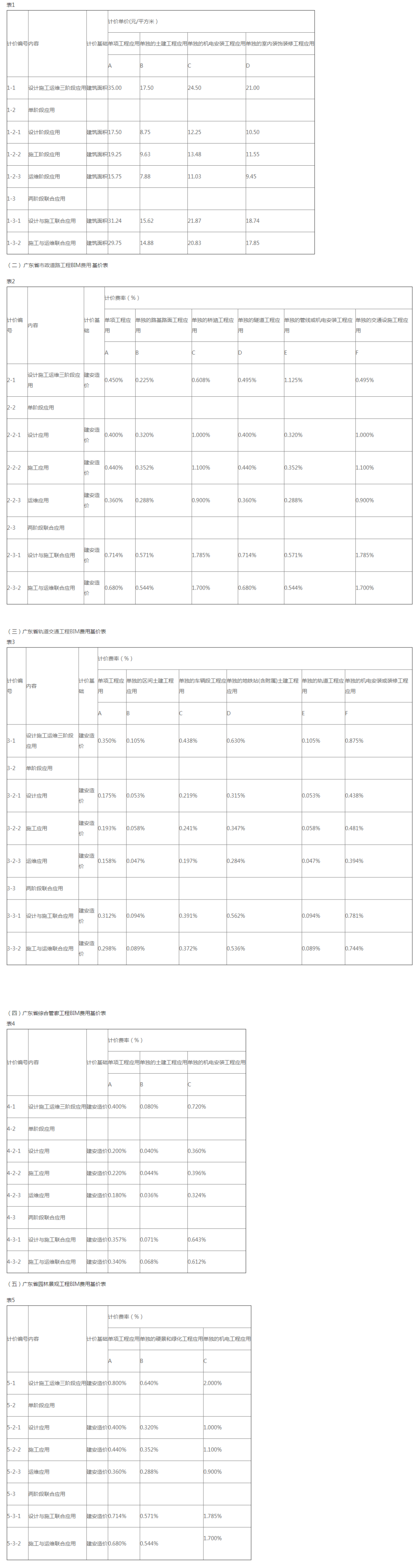 (2)工業與民用建筑工程,當建筑面積少于2萬平方米時,按2萬平方米作為計價基礎計算建筑信息模型(BIM)技術應用費用;市政道路工程、軌道交通工程、地下綜合管廊工程的造價少于1億元時,按1億元作為計價基礎計算建筑信息模型(BIM)技術應用費用;園林景觀工程的造價少于1000萬元時,按1000萬元作為計價基礎計算建筑信息模型(BIM)技術應用費用。