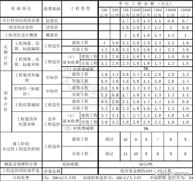 2.造價(jià)咨詢費(fèi)不足2000元的按2000元收取;