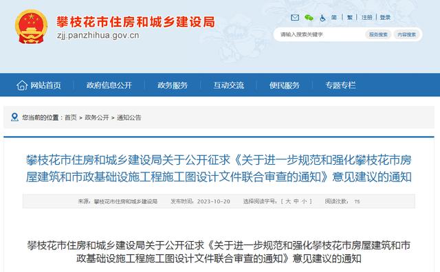 為貫徹落實國務(wù)院辦公廳《關(guān)于全面開展工程建設(shè)項目審批制度改革的實施意見》(國辦發(fā)〔2019〕11號)、《住房城鄉(xiāng)建設(shè)部關(guān)于推進工程建設(shè)項目審批標準化規(guī)范化便利化的通知》(建辦〔2023〕48號)等有關(guān)要求,進一步提升審批服務(wù)效能,更好滿足企業(yè)和群眾辦事需求,我局牽頭起草了《關(guān)于進一步規(guī)范和強化攀枝花市房屋建筑和市政基礎(chǔ)設(shè)施工程施工圖設(shè)計文件聯(lián)合審查的通知(征求意見稿)》,現(xiàn)向社會公開征求意見,請于2023年11月20日18:00前以書面或郵件形式反饋我局。