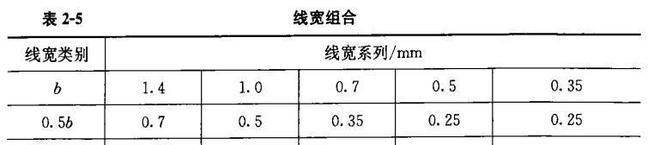 2)每張圖上的圖線線寬不宜超過3種?;揪€寬((b)應(yīng)根據(jù)圖樣比例和復雜程度確定。線寬組合宜符合表2-5的規(guī)定.