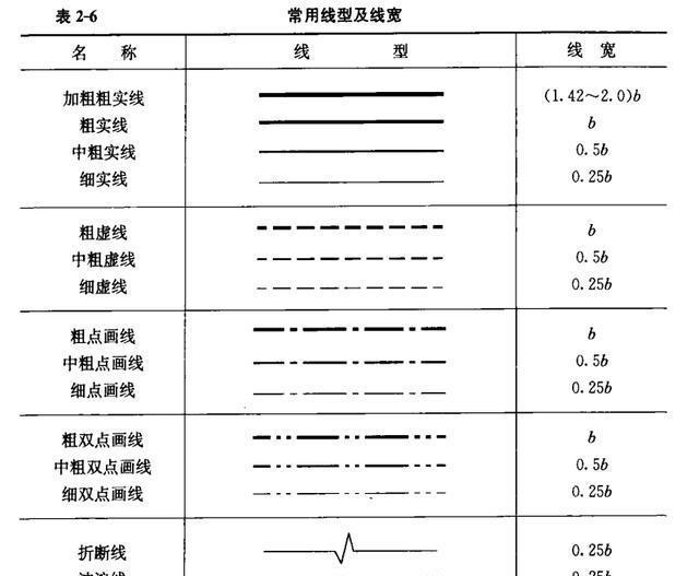 3)圖紙中常用線型及線寬應(yīng)符合表2-6的規(guī)定。