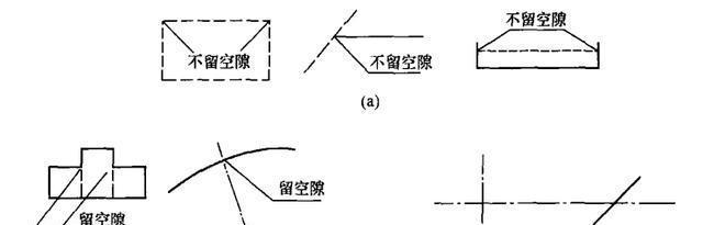 ②當實線的延長線為虛線時,應(yīng)留空隙,見圖2-4(b).