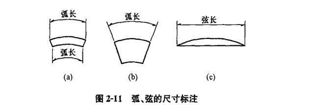 (9)圓弧尺寸宜按圖2-11(a)標注。當弧長分為數(shù)段標注時,尺寸界線也可沿徑向引出,見圖2-11(b)。弦長的尺寸界線應(yīng)垂直圓弧的弦,見圖2-11(c),