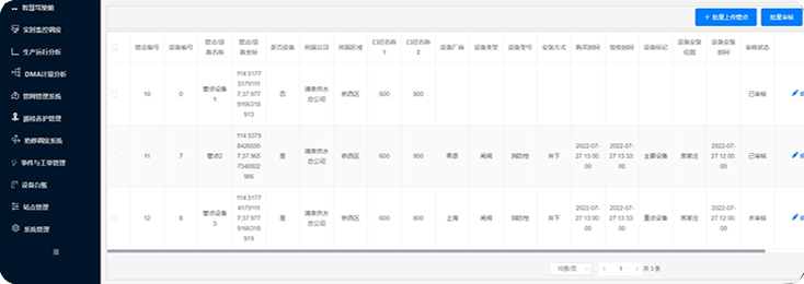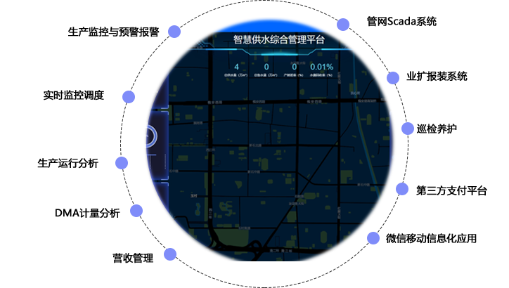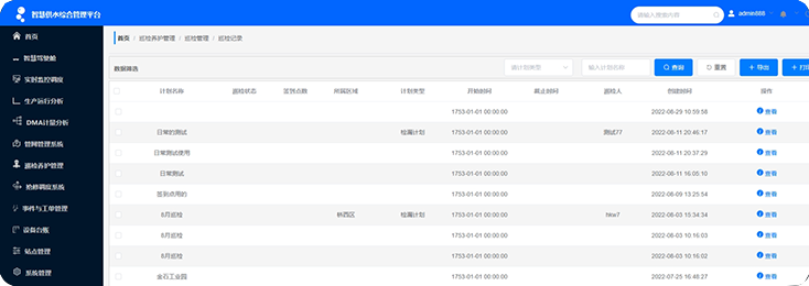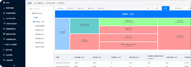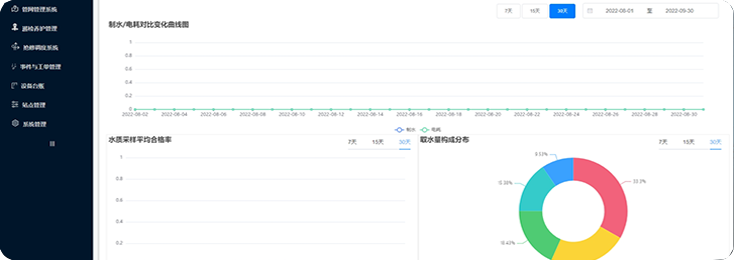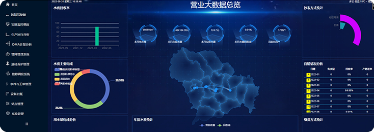 取水分析、消耗產(chǎn)出、水質(zhì)分析、水壓分析、運營分析、設(shè)備統(tǒng)計